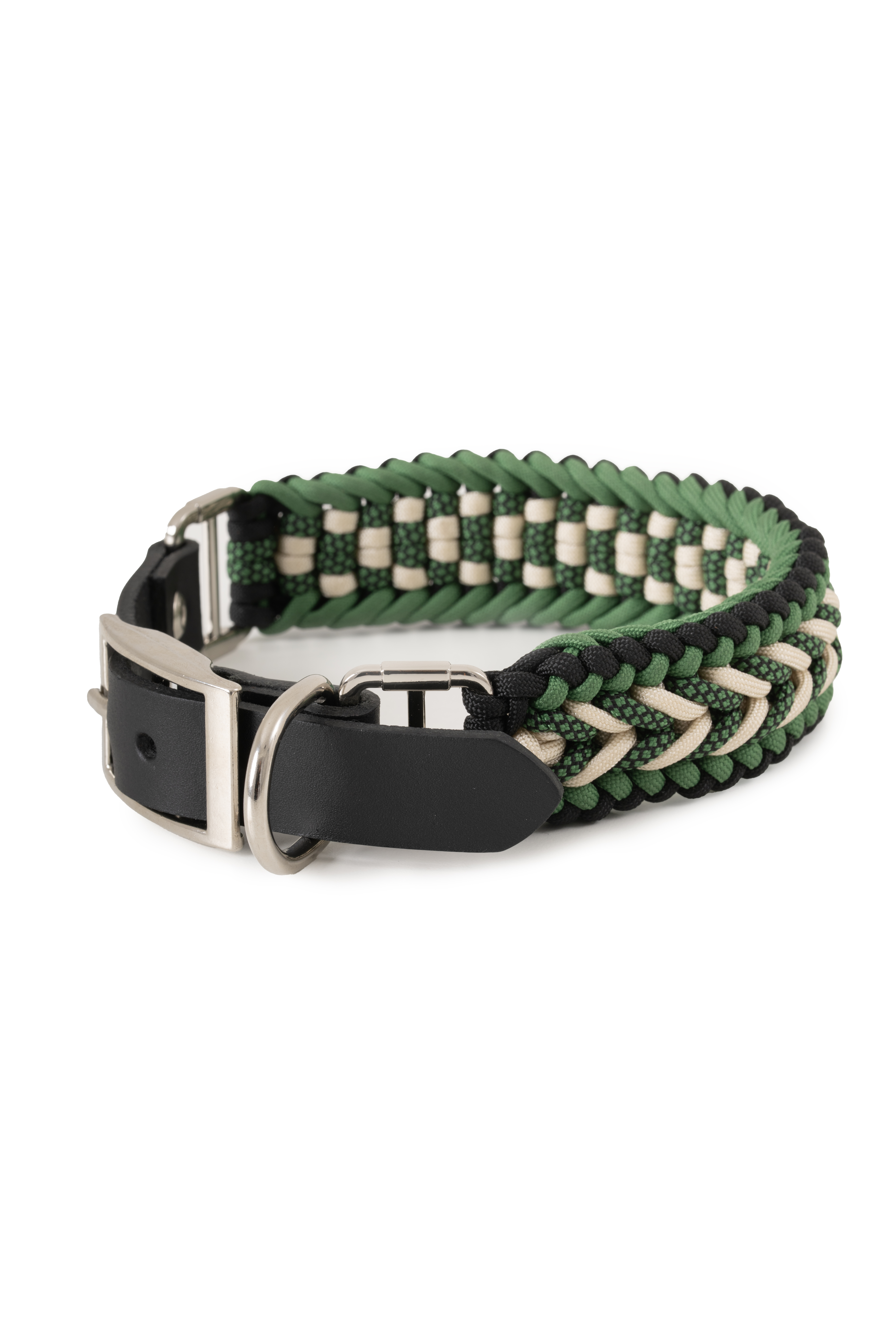 Büyük ırk köpekler için güçlendirilmiş paracord ip ve kalın deri kombinasyonu. Maksimum dayanıklılık ve güvenlik.